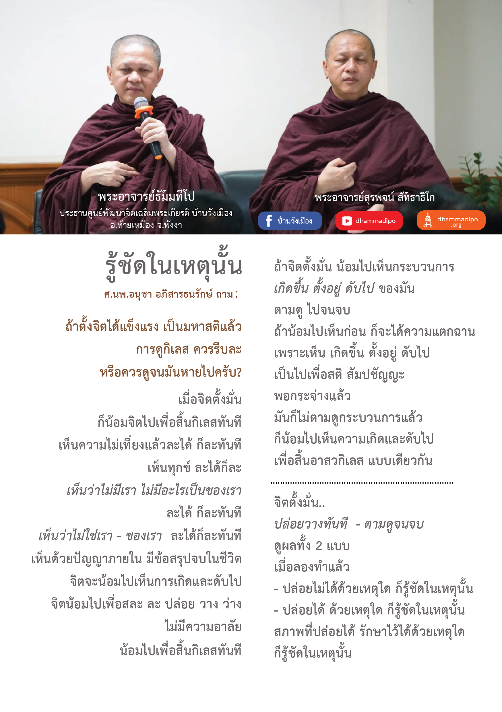 - ปล่อยได้ ด้วยเหตุใด ก็รู้ชัดในเหตุนั้น